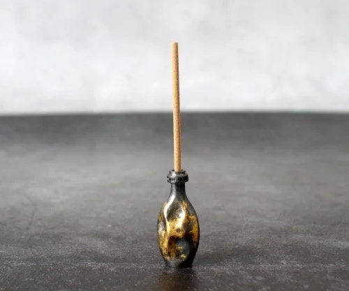 Handcrafted sterling silver incense holder, hammered and applied with 24k gold foil on the silver surface using the kum-boo technique, giving the object both functional and artistic aspects.